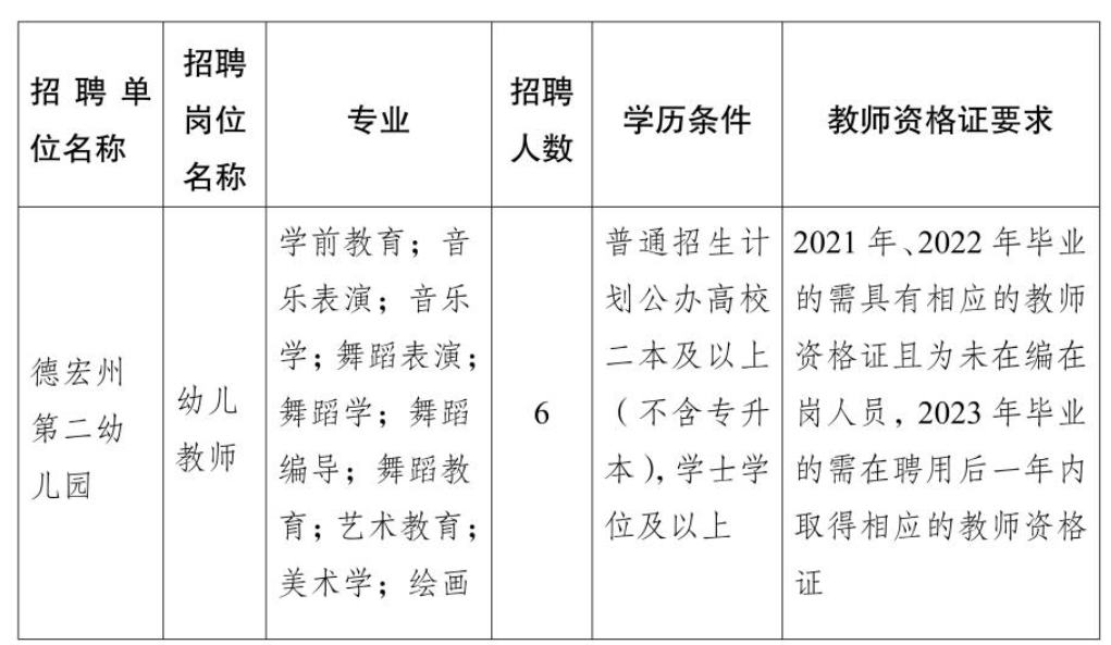 德宏州第二幼兒園2023年考核招聘緊缺專業(yè)學(xué)科優(yōu)秀人才通告