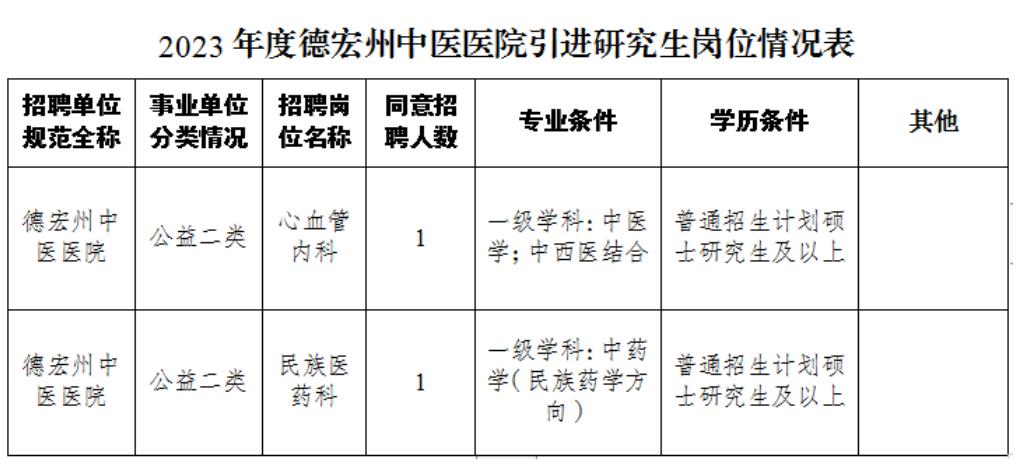 德宏州中醫(yī)醫(yī)院2023年公開(kāi)引進(jìn)研究生公告
