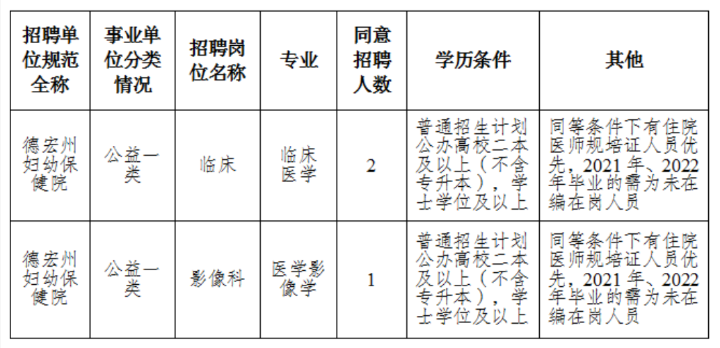 德宏州婦幼保健院2023年帶編考核招聘緊缺專業(yè)學科優(yōu)秀人才公告